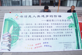 本次活动将持续一周,主要内容有:现场师生在宣传横幅上签名;参加“淘书会友”活动的同学进行图书交换;师生选出需要的书籍交由图书馆订购;从师生中选拔“读书标兵”相互交流读书体会;“作家+作品=奖品”活动;“拍出你心中最能体现读书氛围的场景”摄影展等活动。