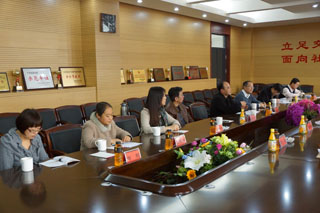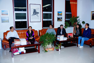 学院党委书记孙智凭(左一)会见嘉宾 |