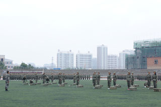 在此起彼伏的“同学们好”、“首长好”、“同学们辛苦了”、“为学校增光”的口号中,我校党委书记朱炳文、校长陈国庆检阅了学生各团军训方队,同学们以标准的军姿、饱满的热情迎接了领导的检阅。