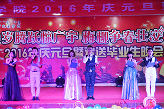12月29日,我院2016迎新年暨欢送毕业生晚会在交通楼A453隆重举行。本次晚会主题为“申岁腾跃惊广宇,梅柳争春壮交院”,由学工处(团委)指导,学生社团联合会策划组织。
